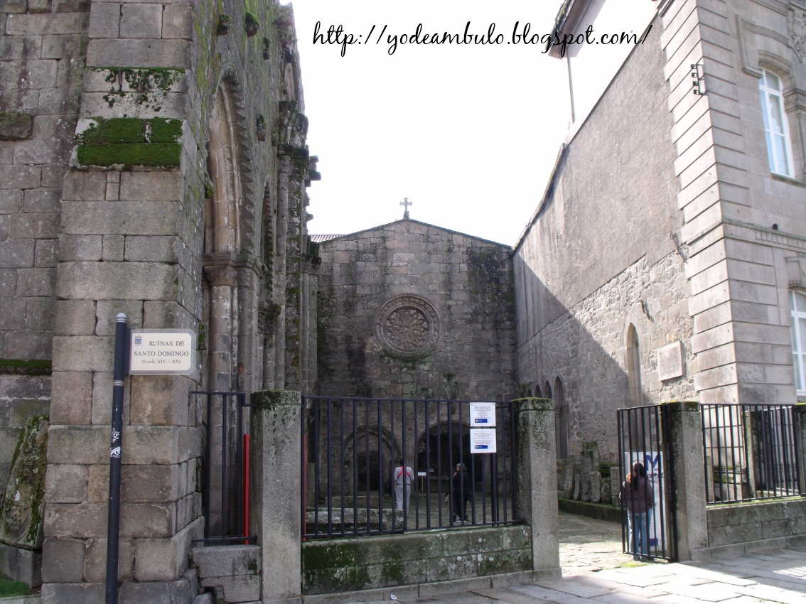 9. Ruinas de Santo Domingo: templo comenzado a finales del XIII. Se conserva la cabecera de la iglesia (s. XIV). Alberga parte de la sección lapidar del Museo de Pontevedra. Monumento nacional.