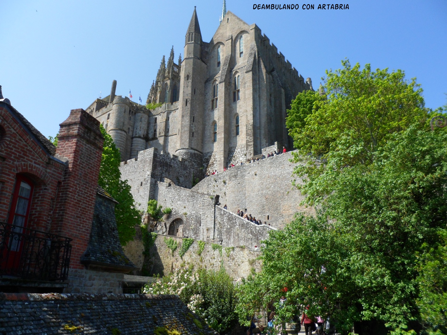 Según la tradición, fue el arcángel San Miguel el que aparecido en sueños al obispo de Avranches le ordenó la construcción de la abadía. El primer edificio se remonta al s. VIII, pero sufrió modificaciones a lo largo de los siglos: en el s. X fue sustituido por una iglesia carolingia, un siglo después se convirtió en cripta, en el s. XII se levantó el claustro y las estancias de los monjes…hasta que el s.XV marcó la época de decadencia del monasterio.Continuaron las transformaciones y en los s. XVIII y XIX fue convertido en prisión. En 1877 se construyó un dique que unía el islote con tierra firme y en 1969, un pequeño grupo de religiosos regresó para vivir en la abadía.