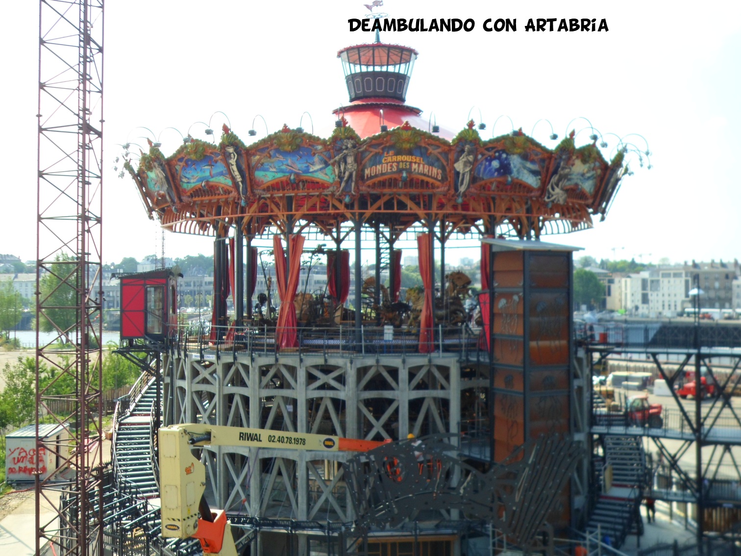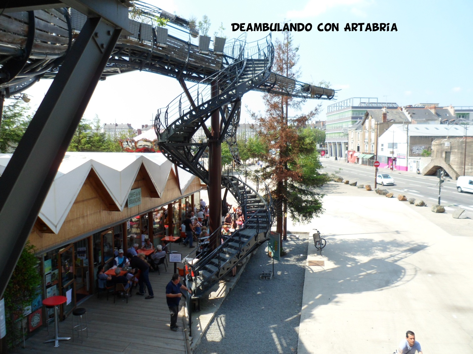 Tras un breve paseo por el casco antiguo, cruzamos a la Isla de Nantes o Isla de las Máquinas. Con 5 km2 y en el medio del río Loira, separa el norte y el sur de la ciudad. Desde hace 10 años sufre cambios constantes . Antiguamente era un zona donde pastaba el ganado, posteriormente una zona industrial de jaboneras, astilleros y empresa de comercio marítimo … La isla es, en definitiva, una mezcla de de áreas residenciales, con servicios y comercios, áreas para el paseo, patrimonio industrial, marítimo y portuario, pasado obrero y arquitectura contemporánea.