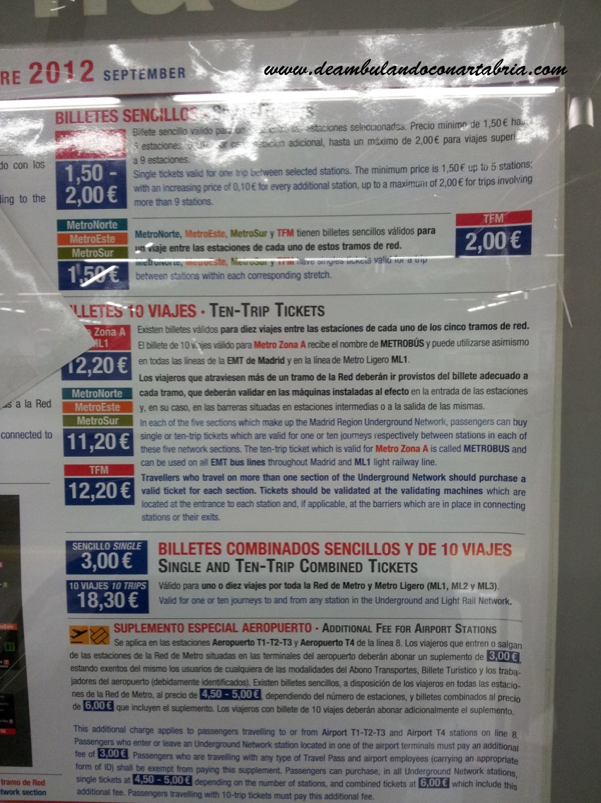 Para que os hagáis una idea de los precios del metro, os dejo los que usamos nosotros: