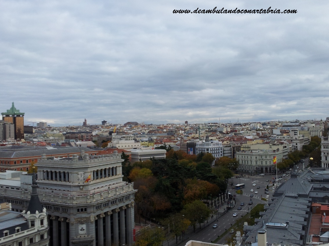 El domingo nos levantamos con la idea de pasear por el Retiro y por el Rastro, pero a última hora cambiamos de planes y ya que el Rastro no nos llamaba mucho la atención, decidimos irnos al Círculo de Bellas Artes para subir a la terraza (3 €).