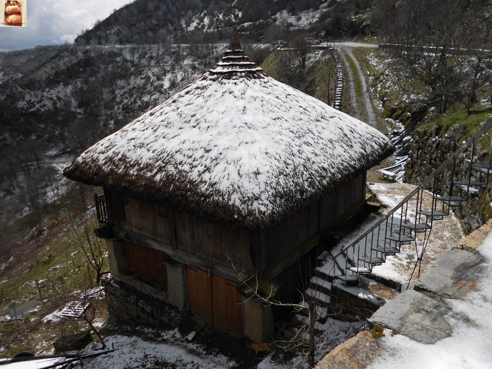 Pero sin duda, lo más famoso de este precioso lugar son la pallozas. Son unas viviendas de paredes bajas de piedra en las que se abren pequeñas ventanas y puertas y en las que convivían personas y animales bajo una alta y tupida cubierta de paja, que soporta el peso de la nieve. La inclinación de la cubierta favorece que la nieve vaya cayendo al suelo.