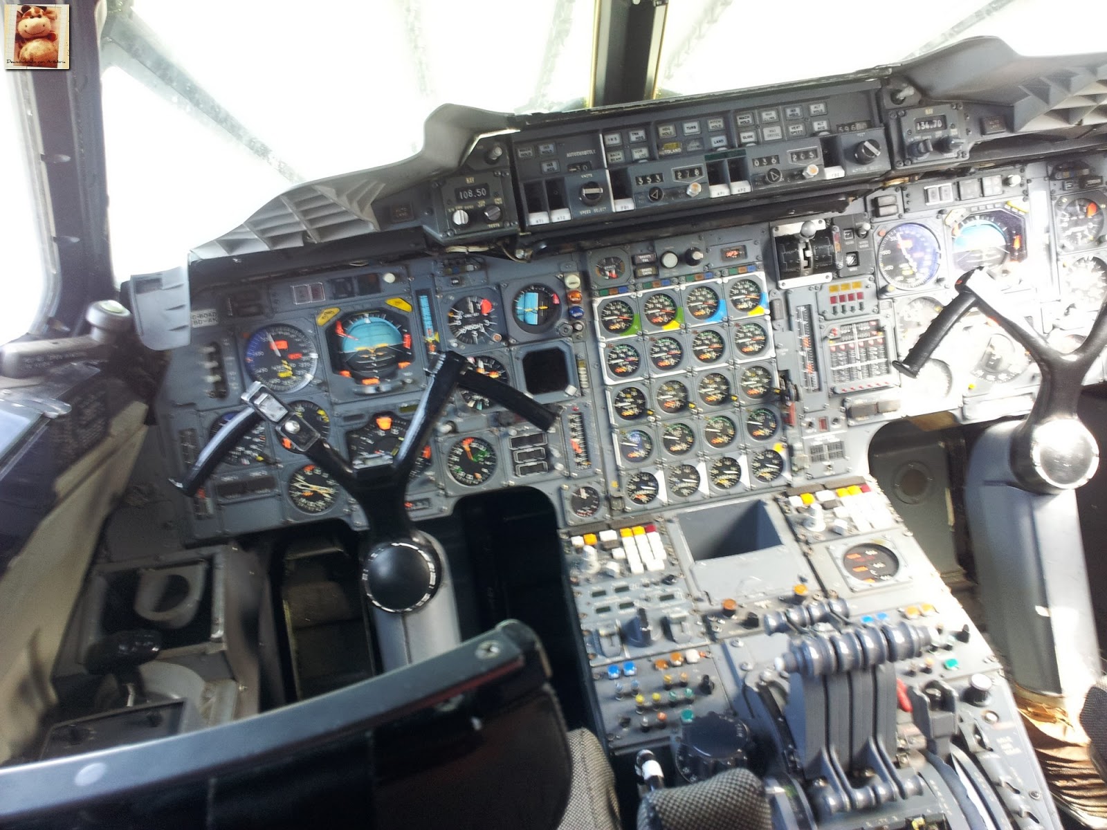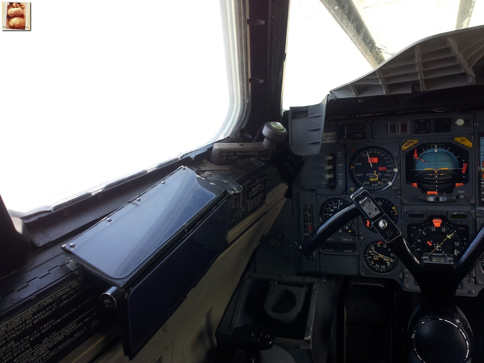 La cabina del Concorde, en una de las ventanas se les recuerda a los pilotos que no pueden abrirlas durante el vuelo. |