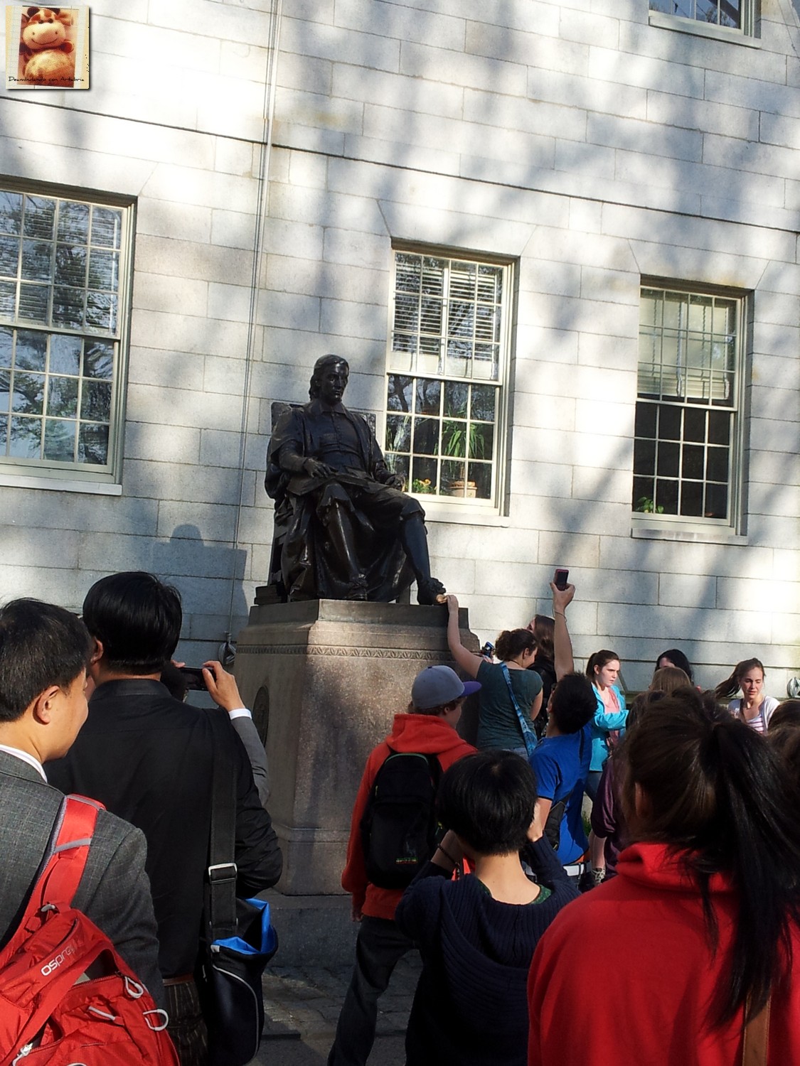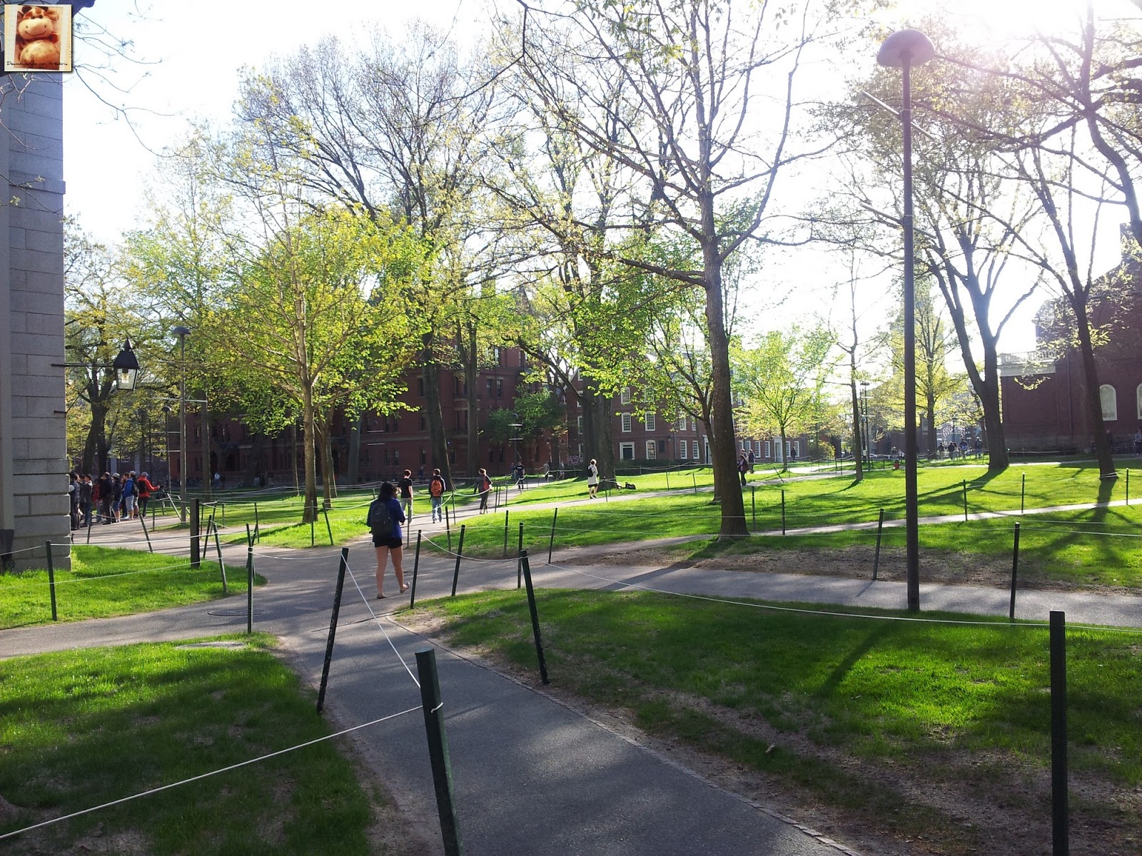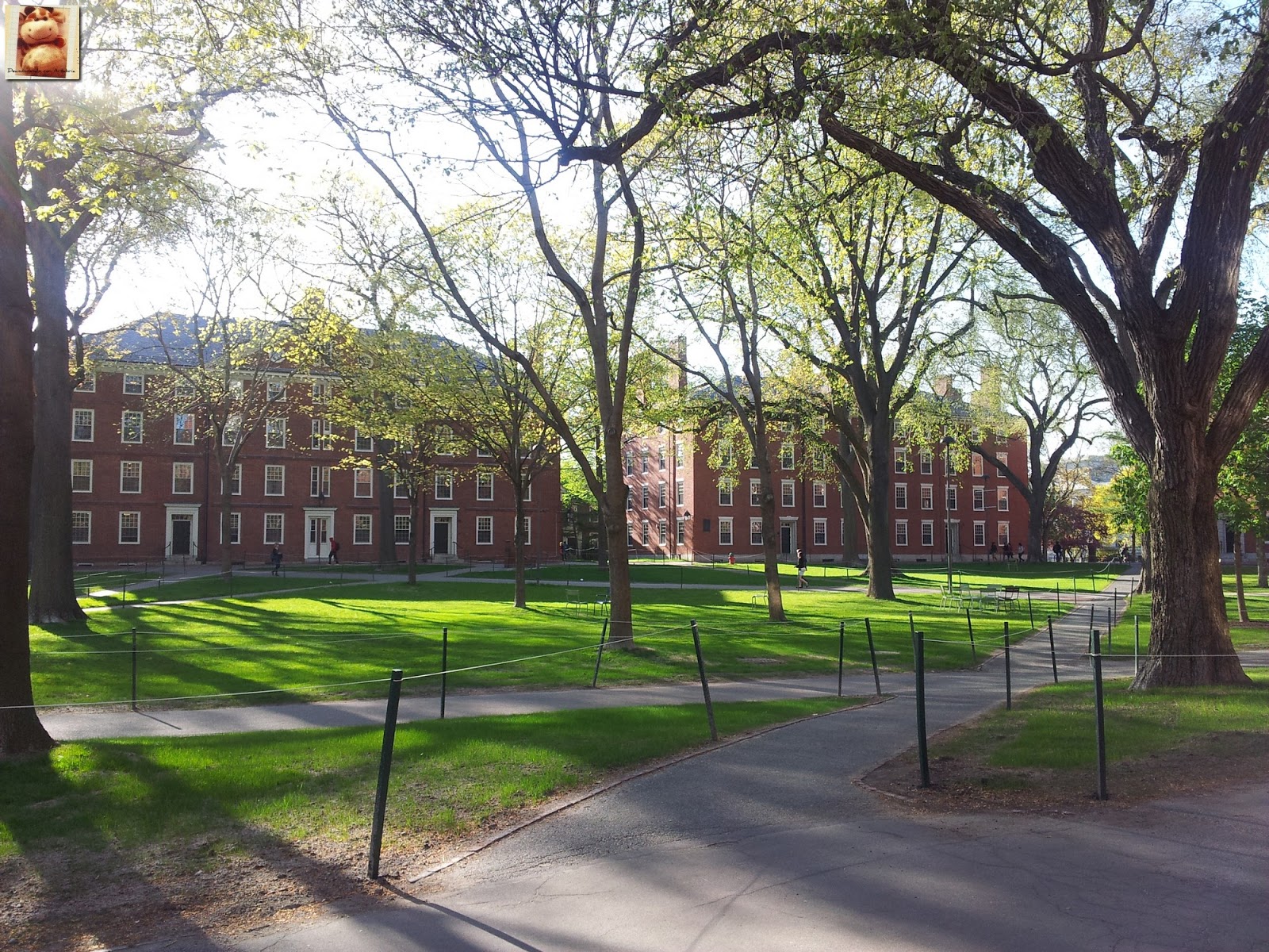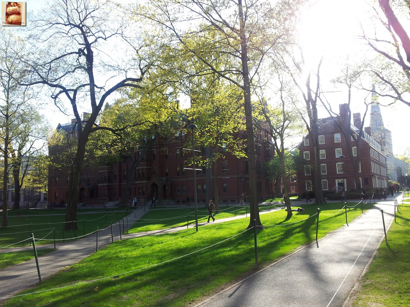 Llegamos a media tarde a Cambridge, la preciosa ciudad universitaria que está pegada a Boston y tras caminar por su calle principal nos adentramos en el campus a través de una de sus majestuosas puertas. Cambridge y Boston están separadas por el Rio Charles. La afamada universidad de Harvard fue fundada en 1963.