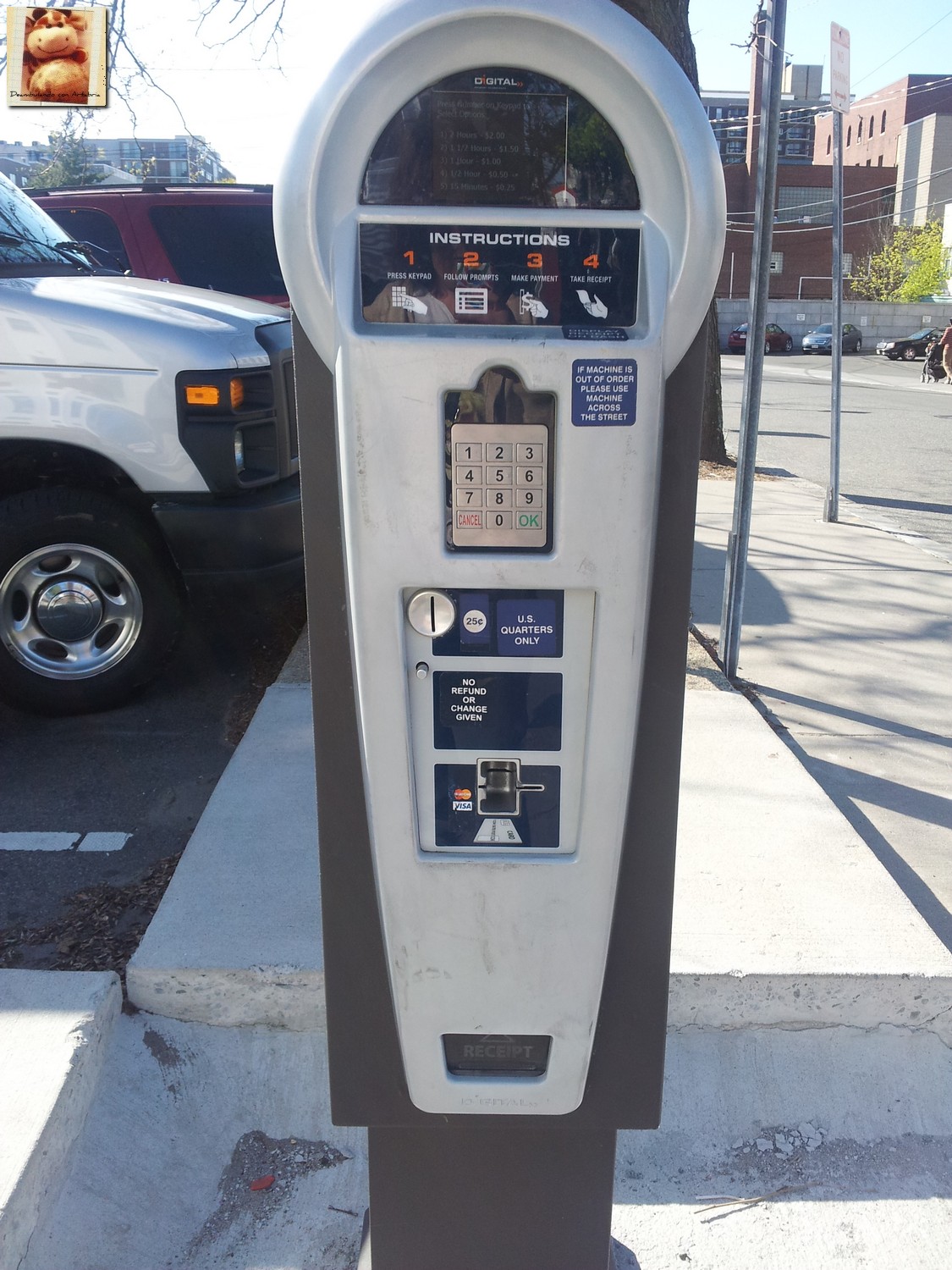 En Cambridge fue en el primer sitio que usamos los famosos parquímetros estadounidenses y aunque a lo largo de los días vimos los más clásicos, esta vez pagamos en uno un poco más moderno y que hasta permitía tarjetas de crédito. Echas la moneda o pagas con la tarjeta la cantidad deseada y aparece el tiempo del que dispones en la pantallita del parquímetro.