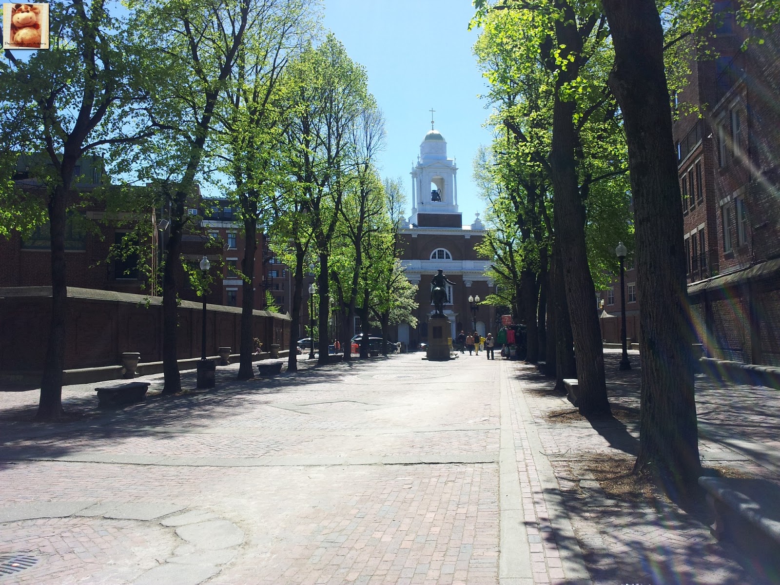 Lo más importante de la ciudad puede verse siguiendo un sendero llamado Freedom Trail. Nuestro hotel estaba justo en el lugar donde terminaba. Os será fácil seguirlo, ya que a lo largo de 4 km veréis una línea de adoquines rojos que os guiará en vuestra caminata. Aunque nosotros, dada la situación del hotel, lo hicimos al revés, lo que recomiendan es empezarlo en el Boston Common, el primer parque público de América. En el parque se encuentra el Boston National Park Visitor Center en dónde podréis conseguir información y creo que hasta visitas guiadas gratuitas.