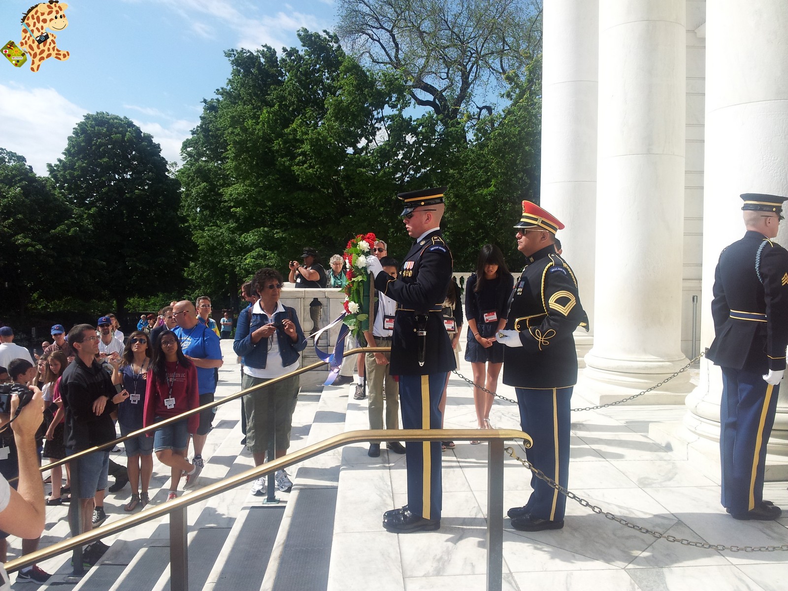 Aparte de recorrer algunos de sus lugares más importantes, no queríamos perdernos el cambio de guardia ante la Tumba al Soldado desconocido. Suele ser cada hora, aunque a veces se hace también cada media. Nosotros llegamos justo a tiempo para verlo y aunque ninguno de los dos es muy de ceremonias de este tipo, llegó a conmovernos el orgullo que se ve en los soldados que rinden homenaje a sus compañeros caídos. Es una ceremonia muy lenta, con los pasos muy medidos y en que hay un silencio absoluto, sólo roto por el ruído de las botas de los soldados que participan y por el del fusible cuando lo cambian de posición.