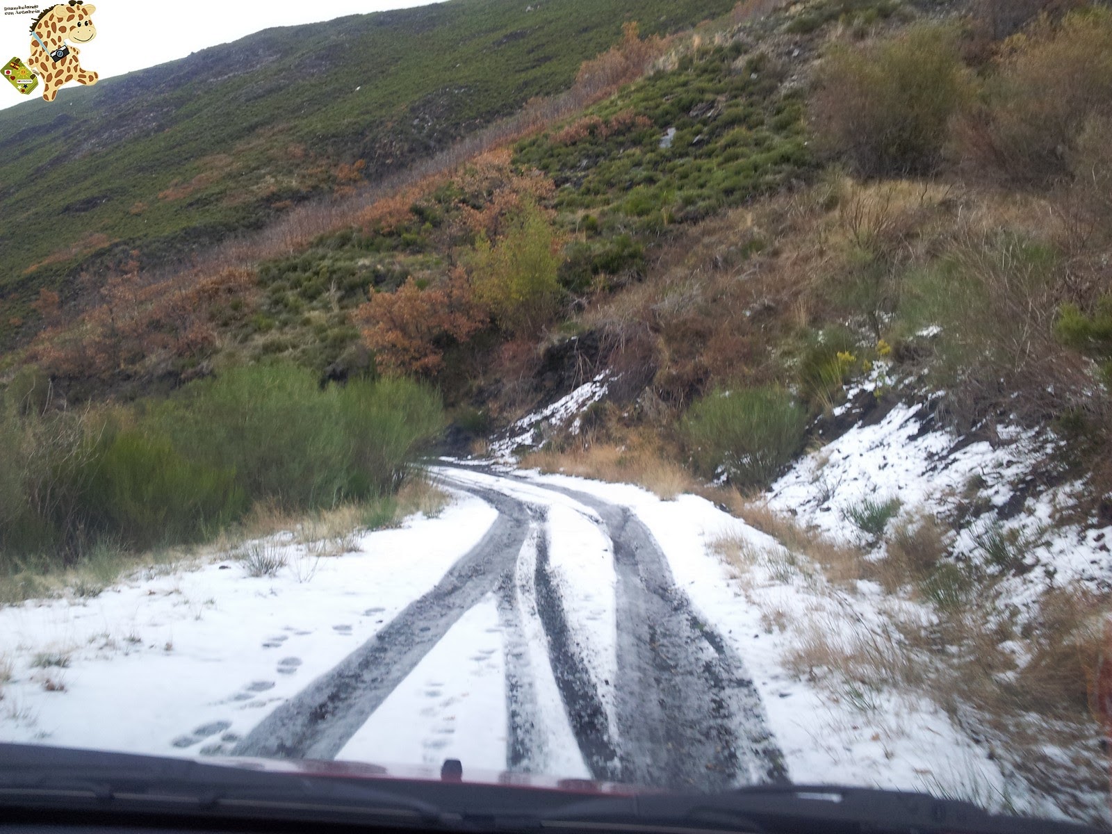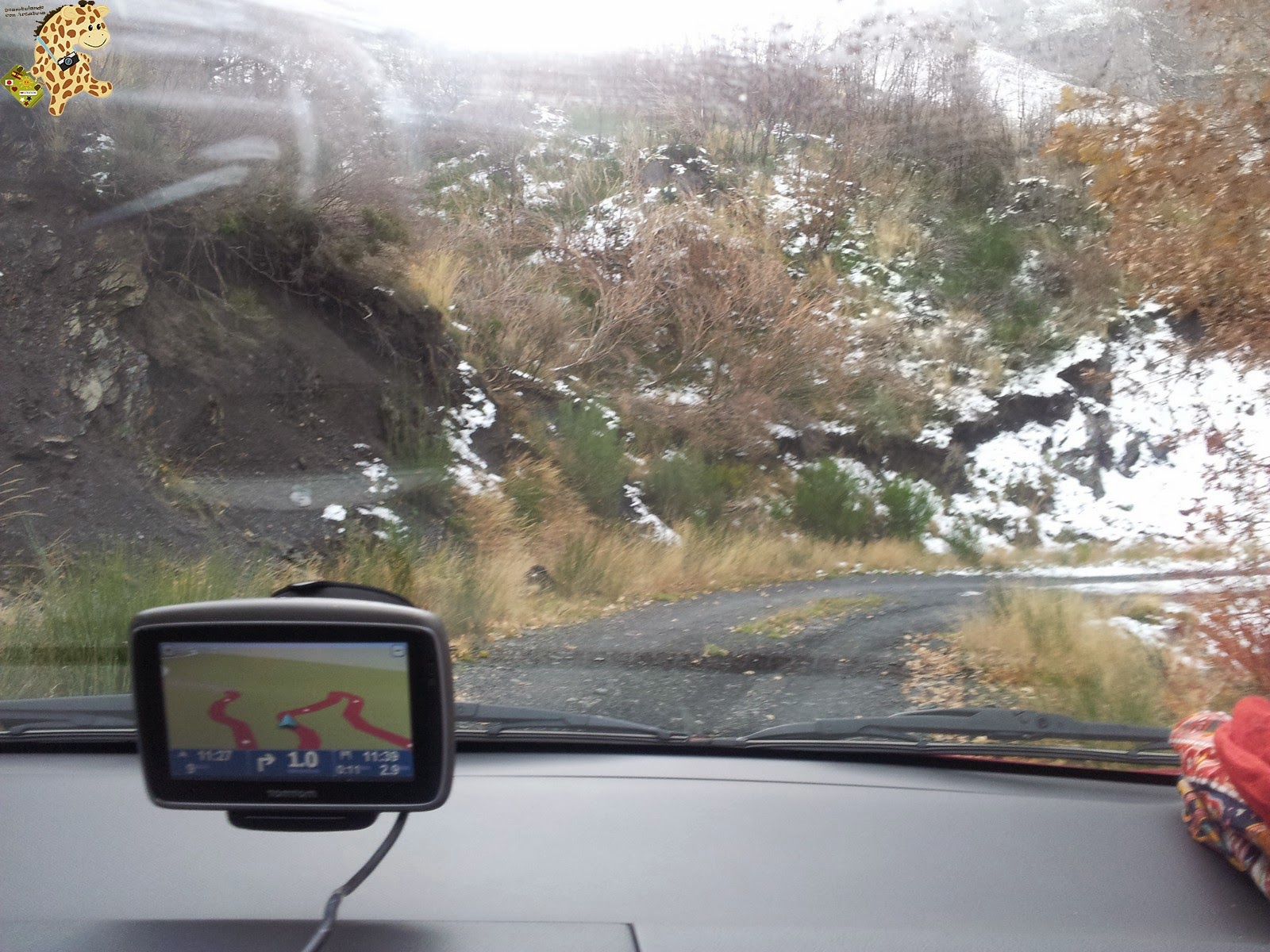 Lo «peor» fue cuando el camino empezó a empeorar y los chicos de Una idea, un viaje, Eviña y Diego, que venían en su coche, desaparecieron de nuestros retrovisores. No había cobertura, no había sitio para parar el coche ni para dar la vuelta y el camino estaba cada vez peor y con más hielo y nieve.