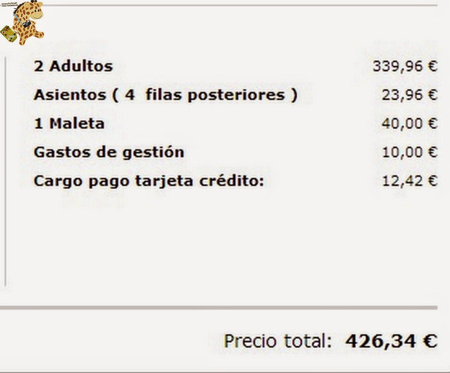 Reserva de asientos = 24,68 euros