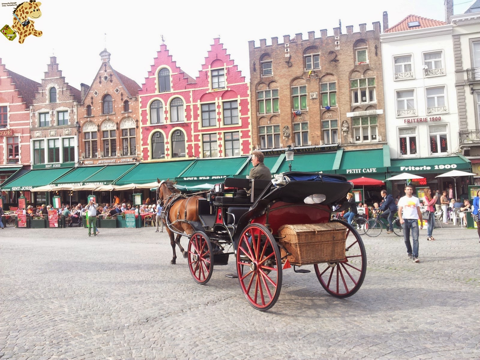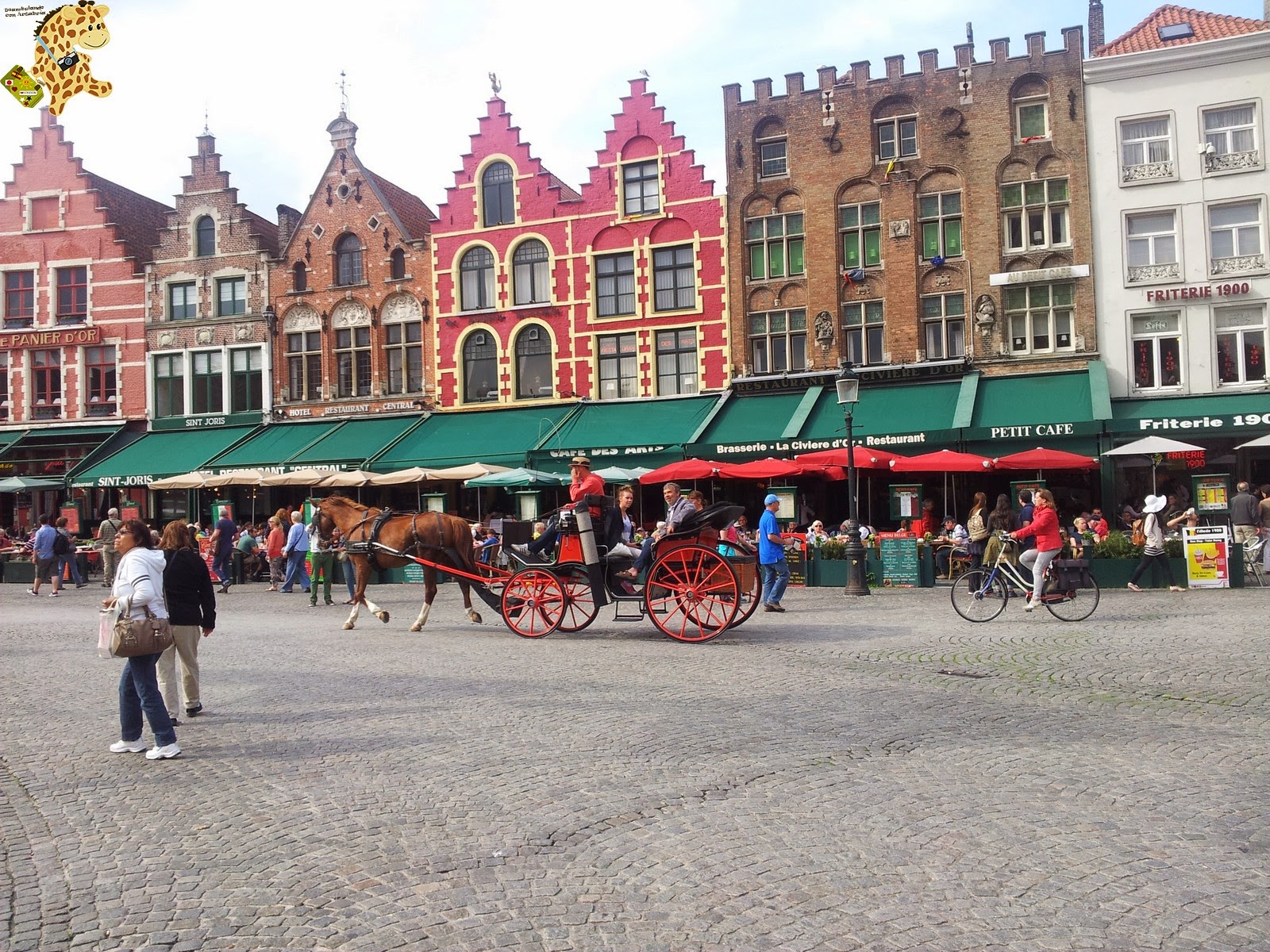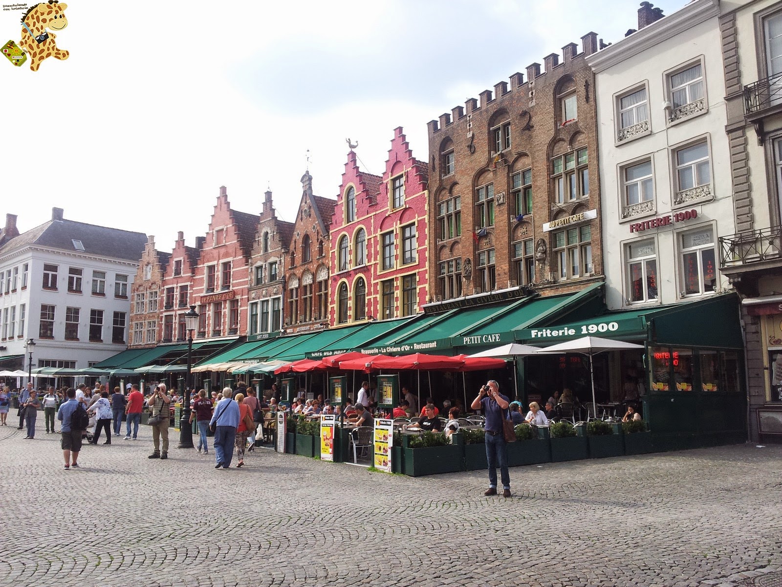 También teníamos pensado alquilar una bici para ir al cercano pueblo de Damme, a unos 6 km, pero no íbamos muy bien informados y para alquilar una bici tendríamos que hacerlo hecho en la estación de trenes.Para terminar el día, nos tomamos un par de gofres y unos cafés en plena plaza Markt. Un capricho caro, pero el final que se merecía un día tan estupendo.