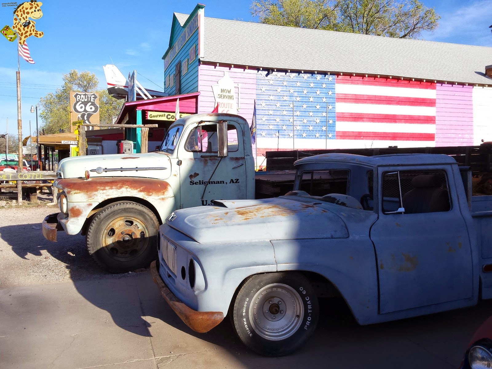 Después de Kingman continuamos camino hacia Seligman. Otro típico pueblo donde todavía hay numerosos vehículos de la época que le dan un aire muy molón.