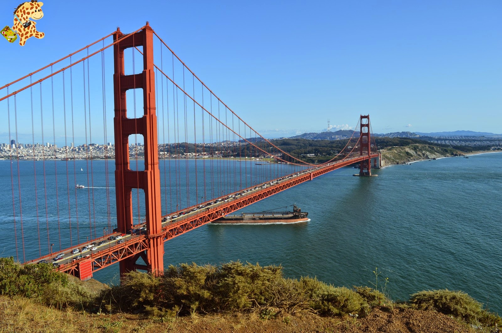 El Golden Gate se empezó a construir en 1933 y se terminó 4 años más tarde. Su longitud es de 2.737 metros y se considera el puente en suspensión más bello del mundo. Se encuentra a 75 metros del agua y calculan que por él pasan 17 millones de coches al año!!