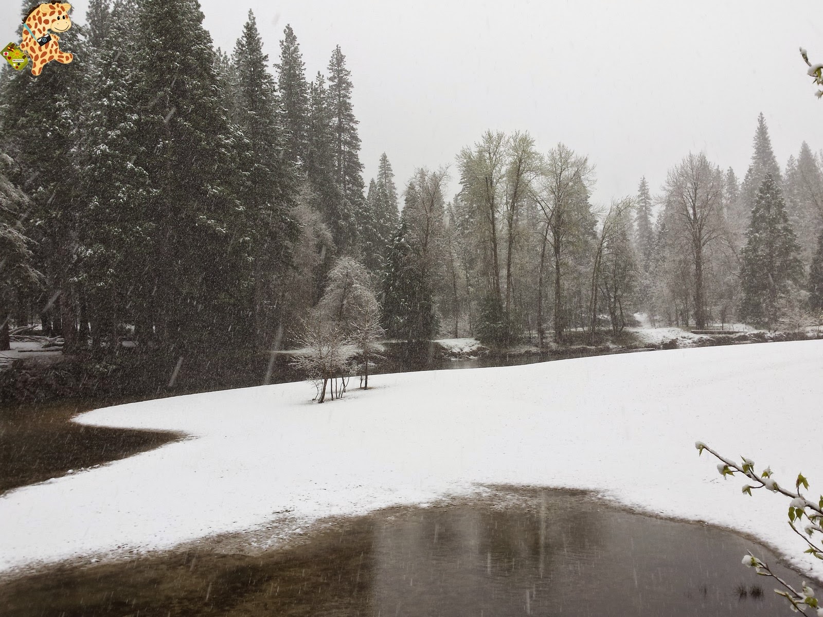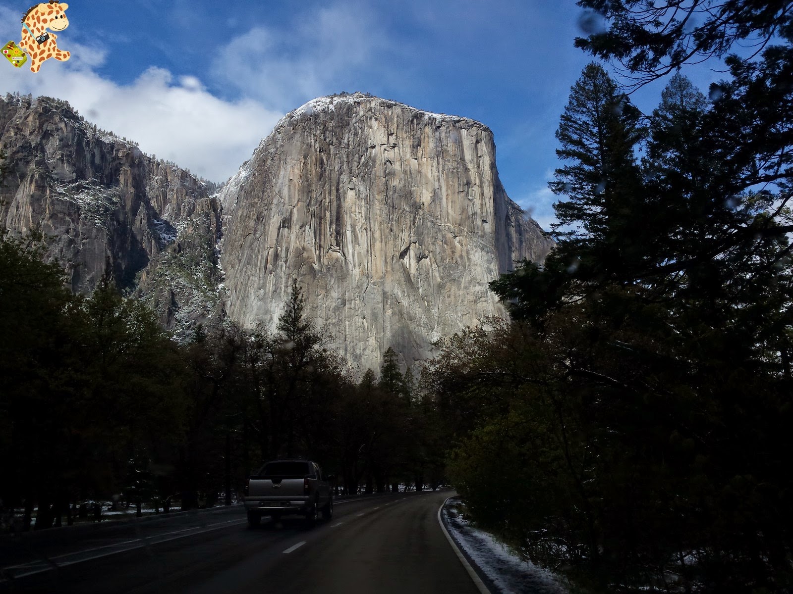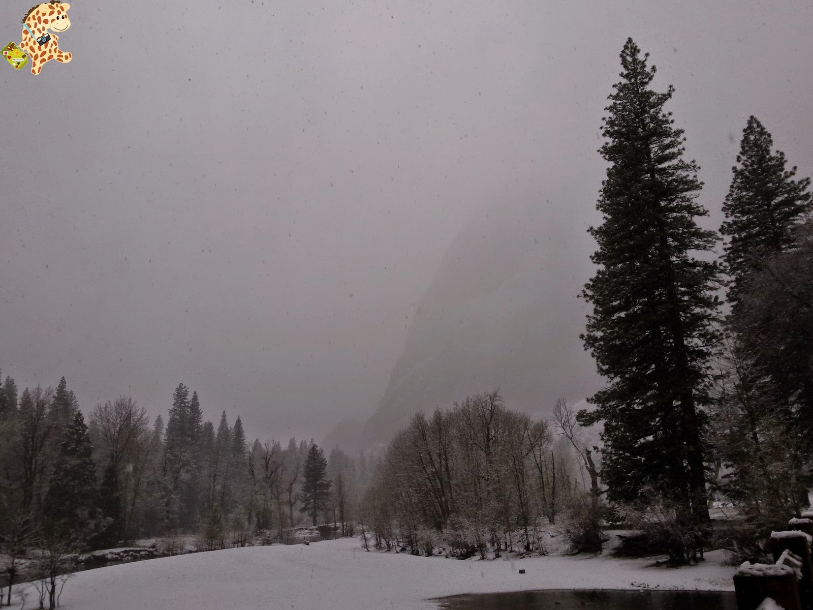 Pero sabéis qué? Sí que mejoró porque empezó a nevar y, más tarde, salió el sol. Así que tuvimos la suerte de ver Yosemite nevado.