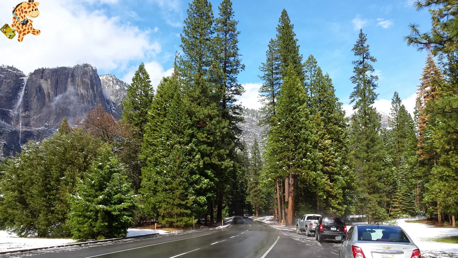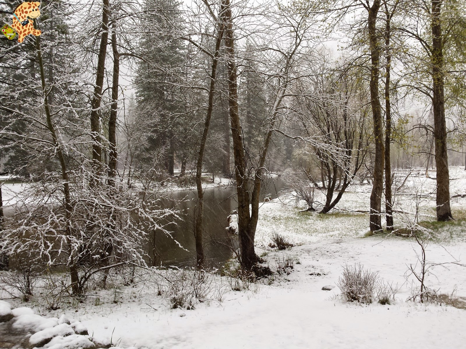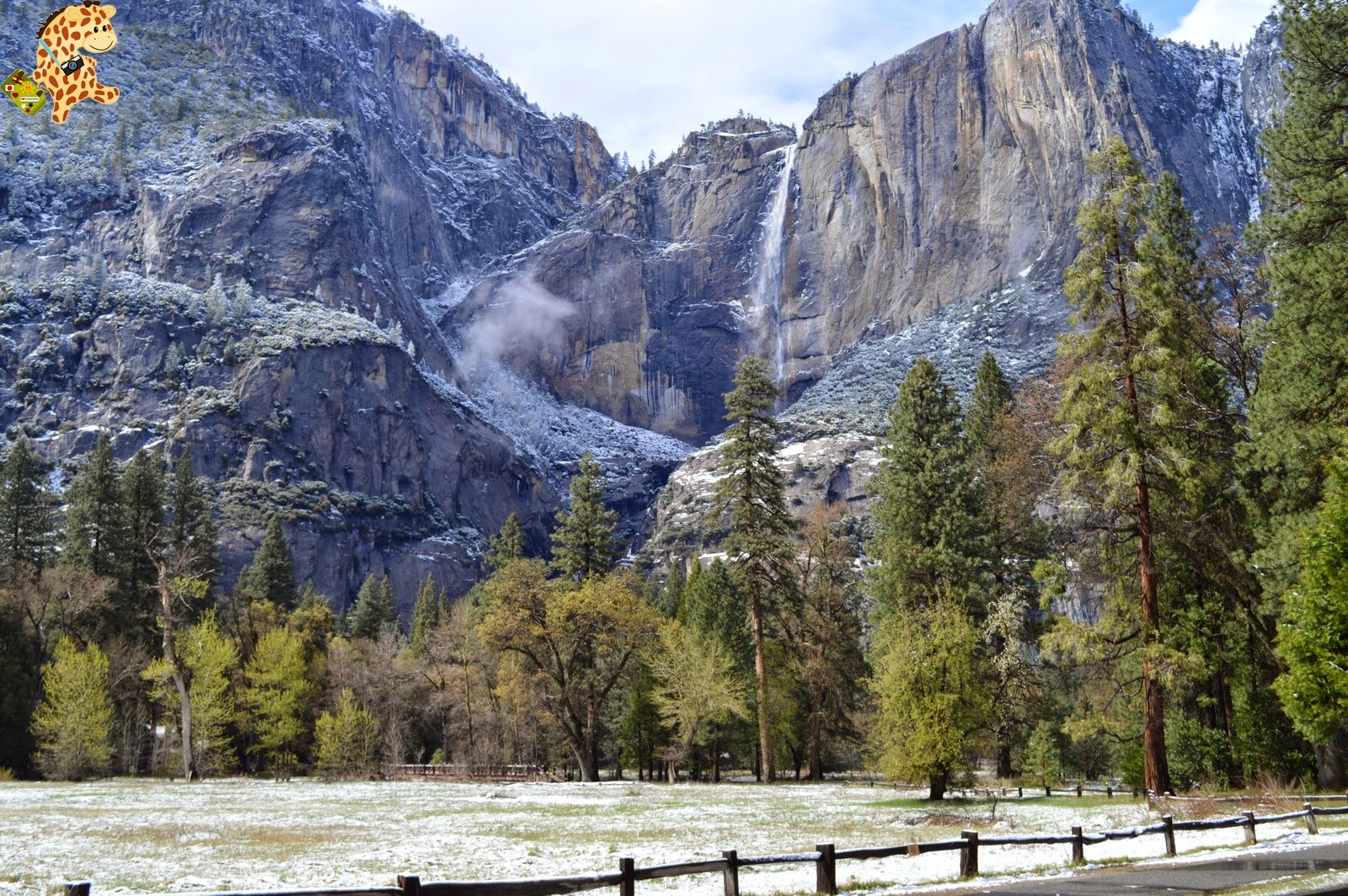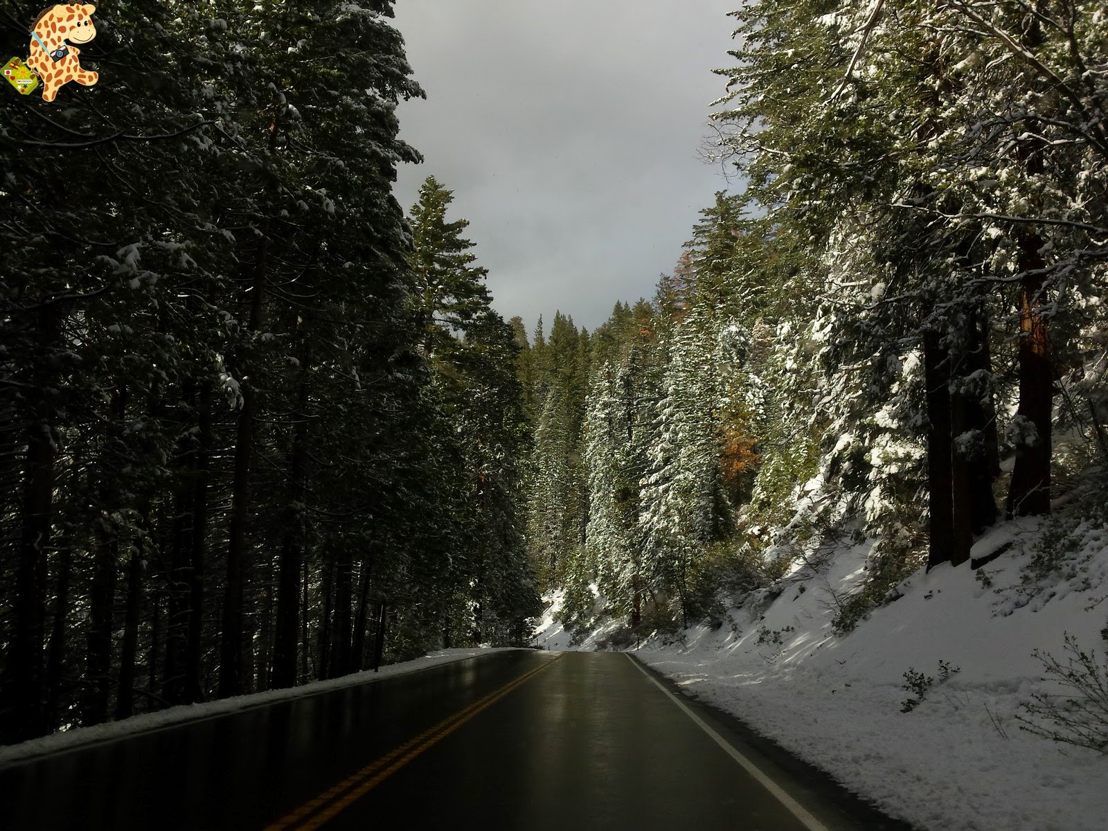 Pero sabéis qué? Sí que mejoró porque empezó a nevar y, más tarde, salió el sol. Así que tuvimos la suerte de ver Yosemite nevado.