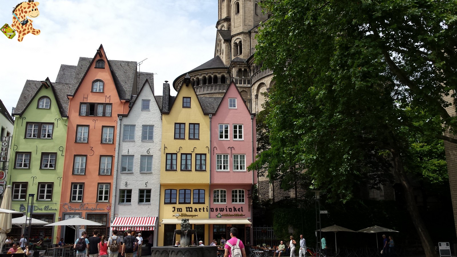 En el s. II d.c. se construyó un granero que luego se convirtió en la iglesia de San Martín en el s. X. Su torre mide 84 m y junto con las casas de colores que hay delante de ella forma una preciosa estampa. Además, en la plaza hay muchísimo ambiente y a su lado nos encontramos con una zona verde a lo largo del río Rhin. Un precioso rincón para descansar después de patear Colonia.