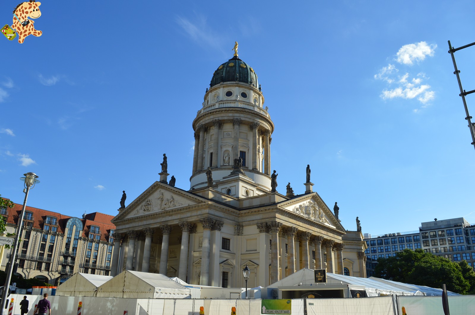– Gendarmenmarkt: presume de ser la plaza más monumental y hermosa de la ciudad, aunque nosotros, como en muchos monumentos y calles de Berlín la encontramos tomada por andamios y por los palcos de un posible festival. En ella se encuentran dos iglesias gemelas, la Französicher Dom y la Deutscher Dom, además del Konzerthaus, construido en el s. XVIII como caballerizas y derribas más tarde para albergar una sala para espectáculos teatrales y auditorio.