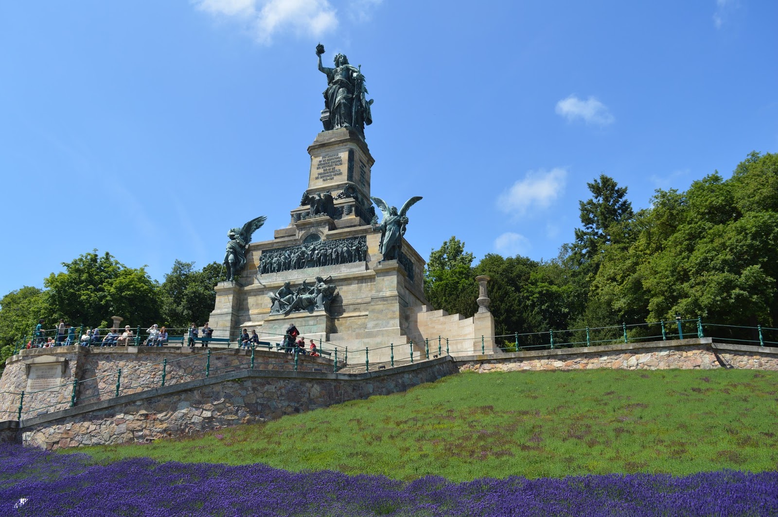 El Niederwalddenkmal es un gigantesco monumento de 38 m de altura, levantado entre 1877 y 1883, a 225 metros a nivel del río y simboliza la restauración del imperio y la unificación alemana.