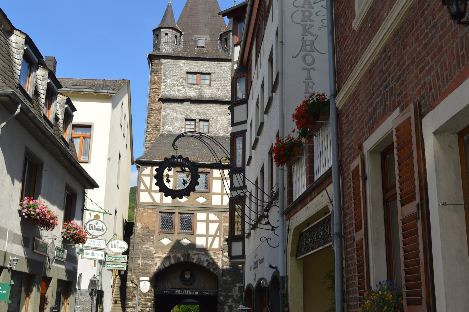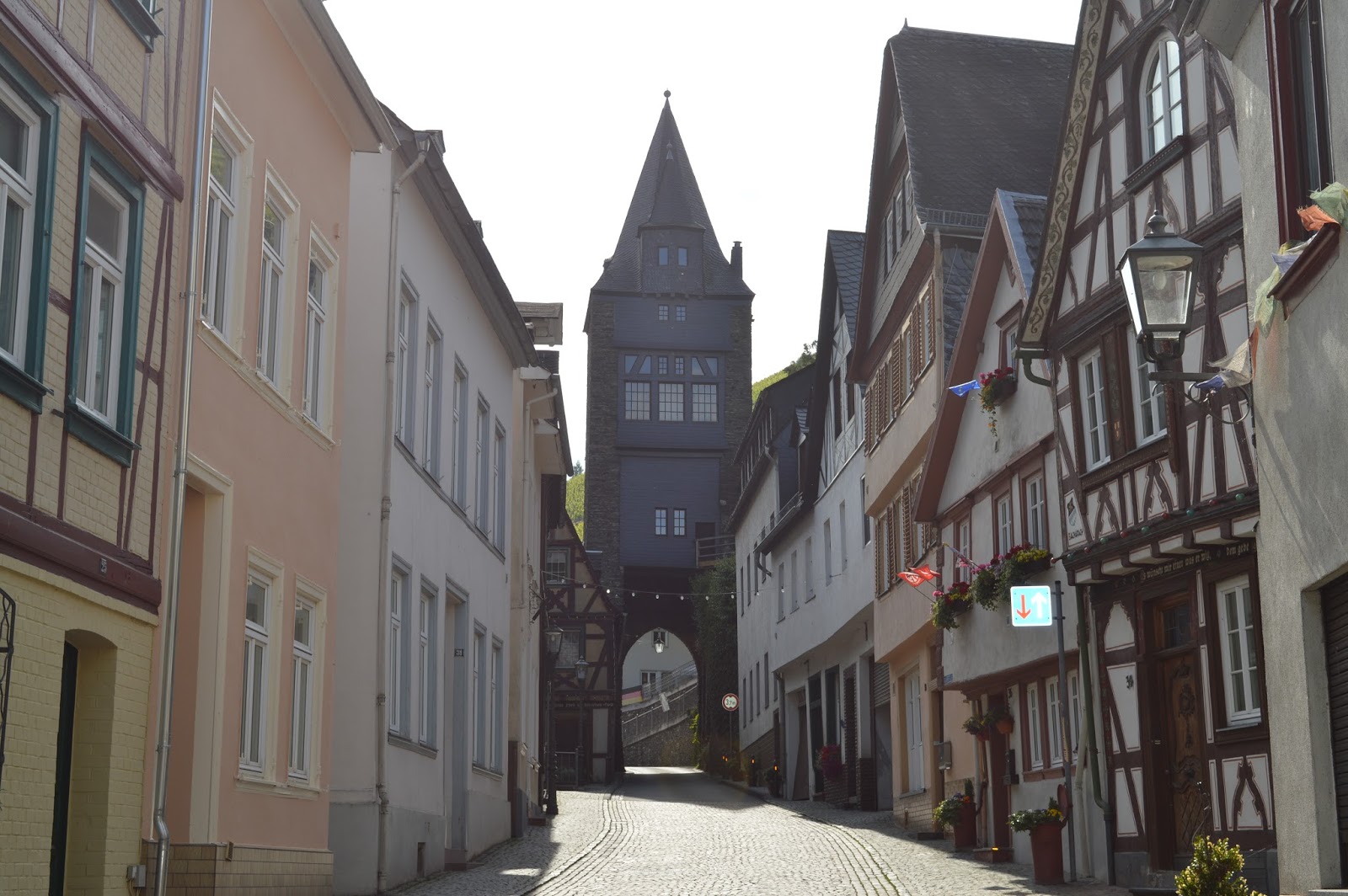 Bacharach es también chiquitita y repleta de las típicas casas con entramado de madera. Antiguamente fue una ciudad amurallada, conservándose a día de hoy una de sus dieciséis torres y puertas construidas en el s. XIV para la defensa de la ciudad.