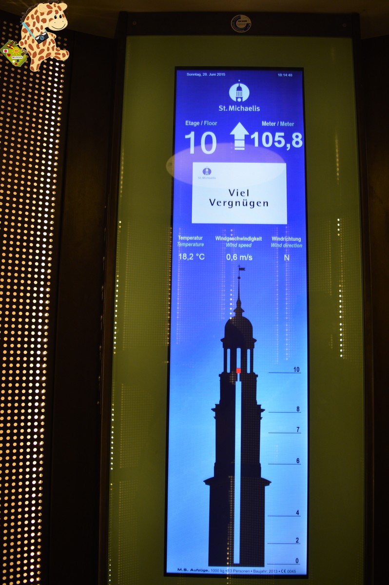 Ya de vuelta al centro, decidimos subir a la torre de la iglesia St. Michaelis, construida entre 1907 y 1912 y cuya altura es de 132 m. Familiarmente, a la torre se la conoce como Michel. Suerte que hay un magnífico ascensor que te sube en nada (5,00 €)