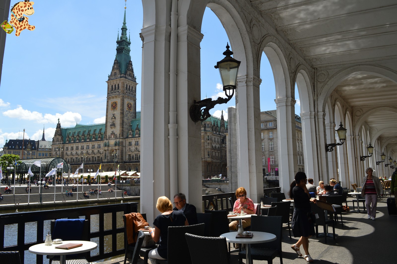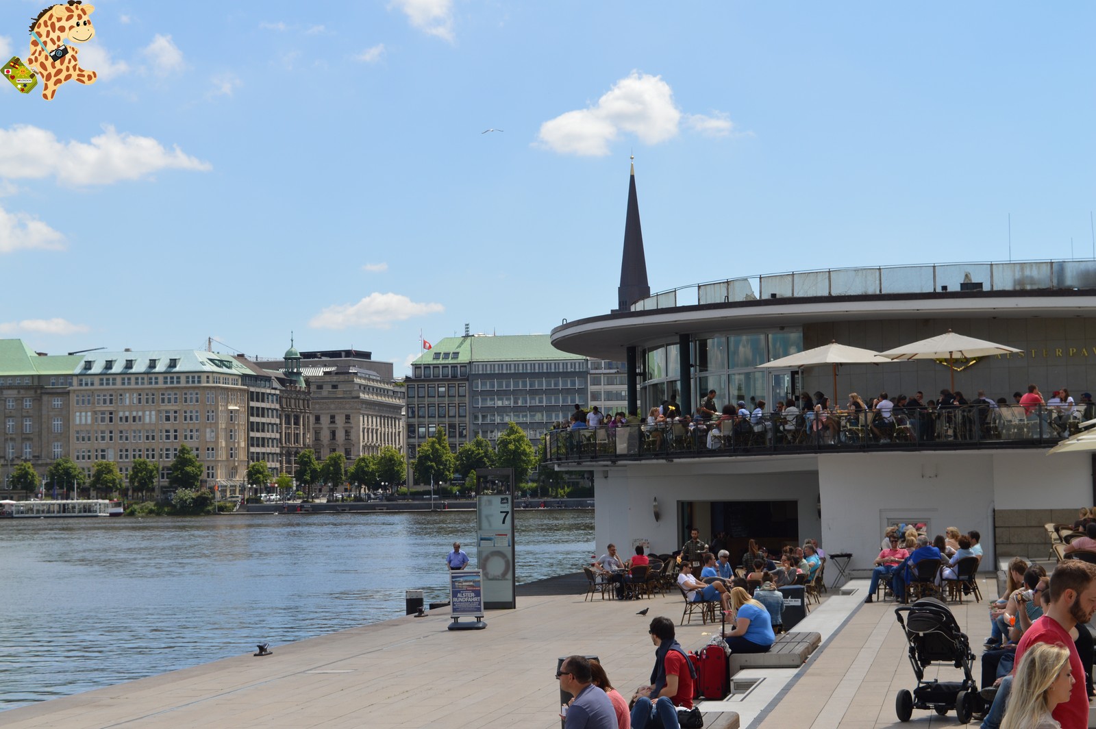 Muy cerca de allí se encuentran las Arcadas del Alster (Alsterarkaden) en el lago interior formado por el río Alster. Y es que en Hamburgo hay dos lagos, el Aussenalster (con diversas actividades acuáticas) y el Binnenalster con una fuente en el medio del lago.