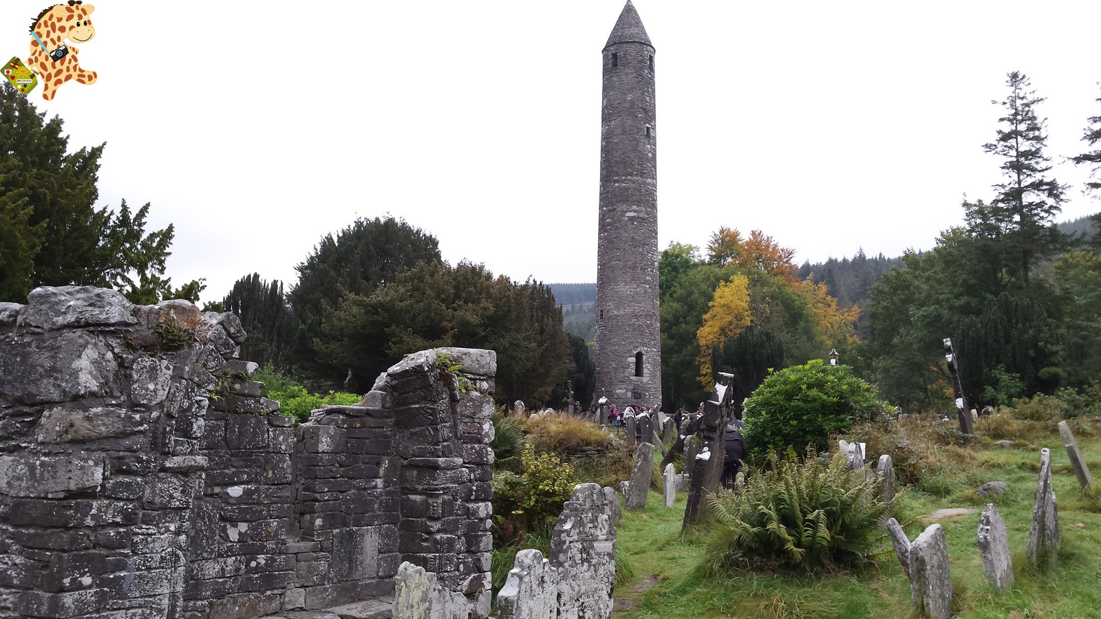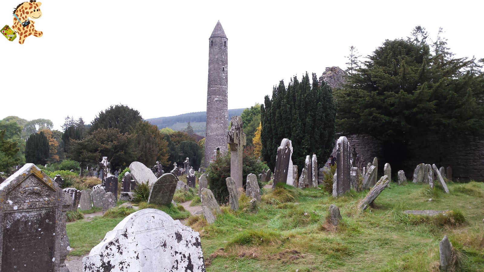 San Kevin llegó a esta zona y fundó un monasterio que adquirió gran importancia a lo largo de los años y llegó a ser uno de los focos principales de la cultura cristiana en la época medieval. Los reyes y los nobles europeos enviaba a sus hijos a Glendalough donde eran educados por los sabios monjes irlandeses. Varios saqueos y el triunfo de la reforma protestante hizo que el lugar quedase abandonado durante varios siglos. Lo que queda en pie es la catedral y la torre circular, tan característica de Irlanda. La torre fue construida en el s. XI y servía de campanario. Como curiosidad, comentaros que el acceso a la torre está en una posición elevada, es decir, no está a ras del suelo. Nos encontramos también con varias cruces celtas y se dice que la de San Kevin tiene la propiedad de conceder los deseos si se juntan los dedos mientras se abraza.